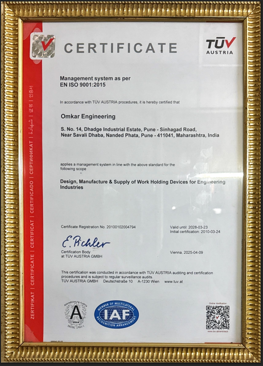 Founded in 2005, Omkar Engineering has grown into a trusted name in hydraulic power chucks, custom-built workholding devices, and Special Purpose Machines (SPMs). With over 19 years of expertise, a TÜV IN ISO 9001:2008 certification, and a strong client base across industries, we deliver precision engineering backed by innovation and commitment. Our goal is simple — empower industries with world-class, made-in-India solutions that deliver performance, reliability, and growth.
